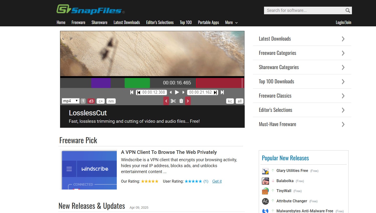 نبذة تعريفية: SnapFiles، المعروف سابقاً باسم FileForum، هو موقع تحميل برامج له تاريخ طويل ويتمتع بسمعة جيدة في مجتمع المستخدمين. ما يميز SnapFiles هو أنه لا يكتفي بفهرسة البرامج، بل يقوم فريق الموقع بمراجعة وتقييم العديد منها، مع التركيز على تقديم مجموعة منسقة ومختارة من البرامج المجانية (Freeware) والبرامج التجريبية (Shareware) الآمنة والمفيدة لنظام ويندوز.