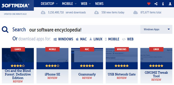 - قد لا تكون مكتبته شاملة تماماً مثل Softpedia، ولكنه يغطي البرامج الأكثر شعبية بشكل ممتاز.