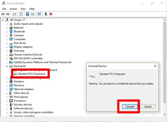 إذا استمر الكيبورد لا يعمل على اللابتوب الخاص بك، فيمكنك تجربة حل آخر لهذه المشكلة وهو من خلال إلغاء وإعادة تثبيت تعريف الكيبورد على جهازك ويمكنك القيام بذلك كما يلي: