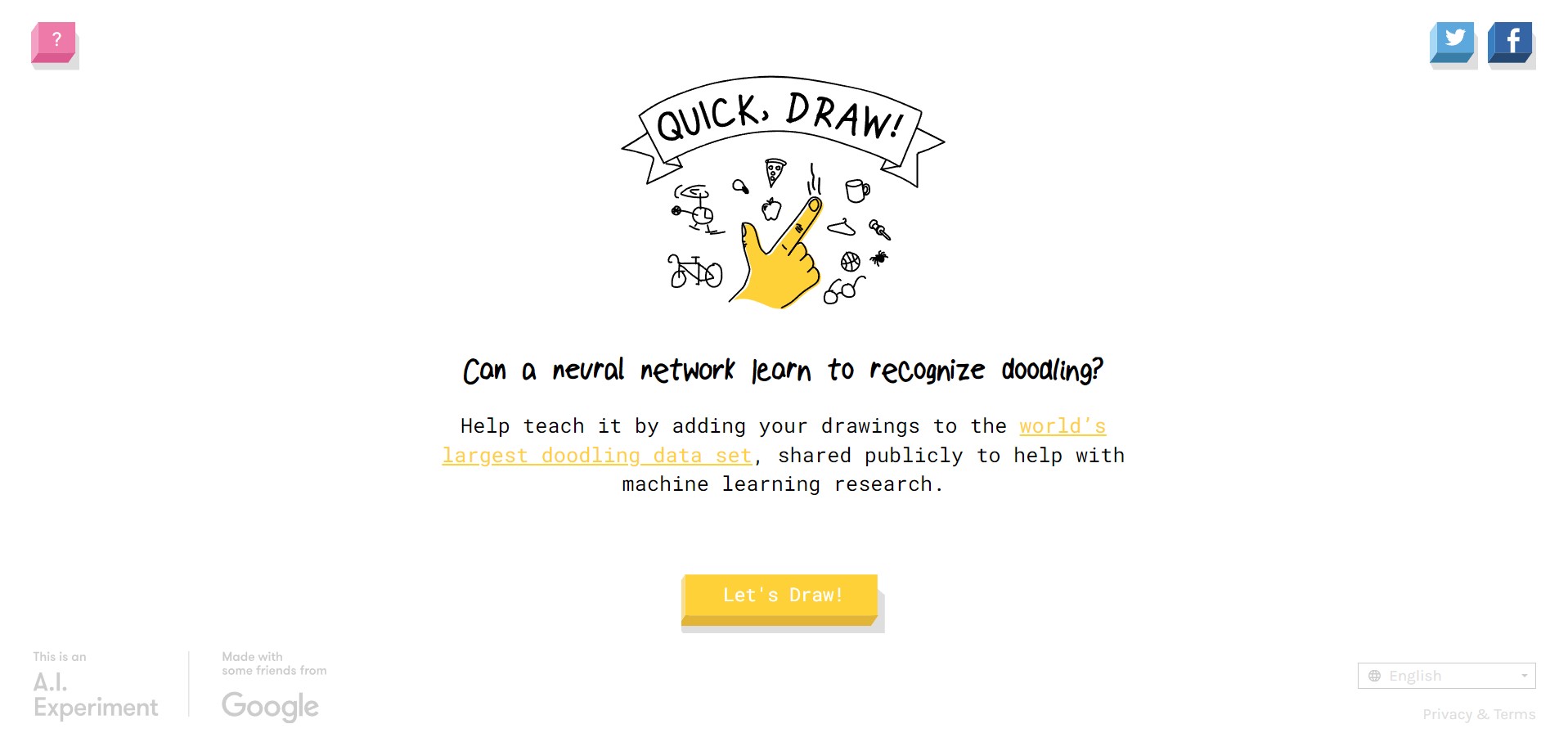 مع تحقيق جوجل لتقدم هائل في مجال التعلم الآلي، تسمح الشركة للمستخدمين باختبار قدراتها من خلال ألعاب بسيطة. أطلقت جوجل لعبة Quick Draw، وهي تجربة ذكاء اصطناعي ولكنها نوع من الألعاب التي تتنبأ بالرسومات. تطلب اللعبة من المستخدم رسم شيء ما على الصفحة وتحاول الشبكة العصبية لجوجل التعرف على الرسم. أثناء الرسم، تستمر جوجل في تخمين الرسم، ومن الممتع مشاهدته، قد لا تكون مثيرة للبعض، ولكنها بالتأكيد واحدة من أفضل ألعاب جوجل من الناحية الإبداعية.
