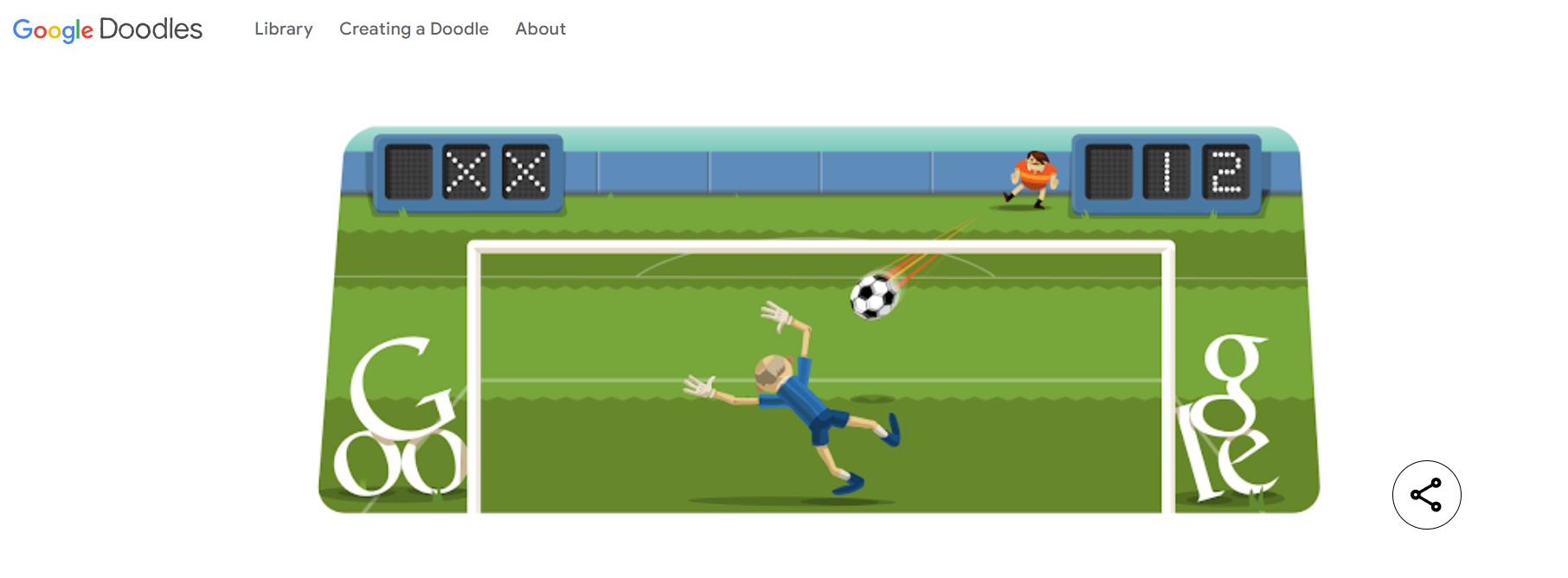 كرة القدم هي واحدة من أفضل ألعاب جوجل التفاعلية التي يمكنك لعبها على محرك البحث. تم إنشاؤها خلال دورة الألعاب الأوليمبية لعام 2012 وما زالت اللعبة الأكثر شعبية للعب كرة القدم عبر الإنترنت. تحظى الرسومات التفاعلية بشعبية كبيرة بسبب عدم وجود عمليات تنزيل ورسومات رائعة. سيكون جوجل نفسه هو خصمك الذي يركل الكرة إلى المرمى وسيتعين عليك الدفاع كحارس مرمى. يمكن أن تصبح اللعبة ممتعة حقًا بمجرد عبور مستويات معينة.