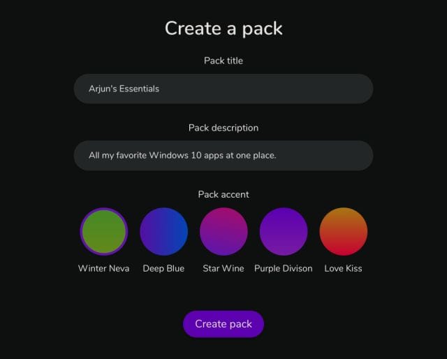 - قم بإضافة خمسة برامج على الأقل ثم قم بالنقر على Create Pack في الشريط السفلي.