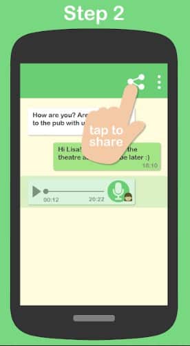 • الآن قم بالنقر على زر المشاركة وقم باختيار تطبيق Audio to text ثم انتظر حتى يتم تحويل الرسالة، ويمكنك قراءتها أو نسخها بكل سهولة.