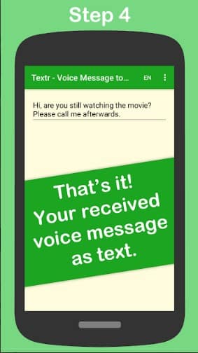 • من خلال الخيارات التي تظهر لك قم بالنقر على تطبيق Textr وانتظر حتى يقوم التطبيق بتحويل الرسالة الصوتية إلى نص.