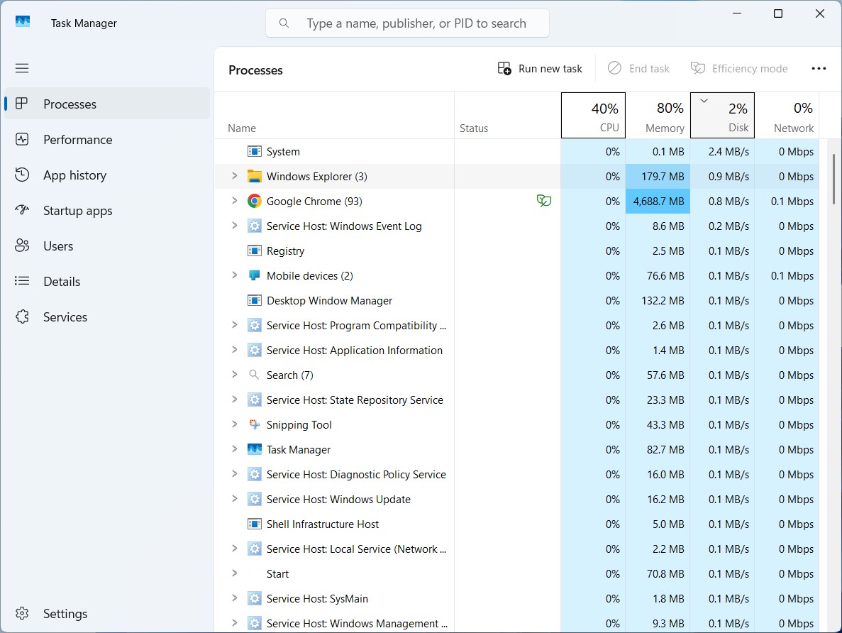 • مرة أخرى، راقب مدير المهام. إذا انخفض استخدام القرص، فهذه الخدمة هي السبب المحتمل، خاصة إذا كان قرصك من نوع HDD.