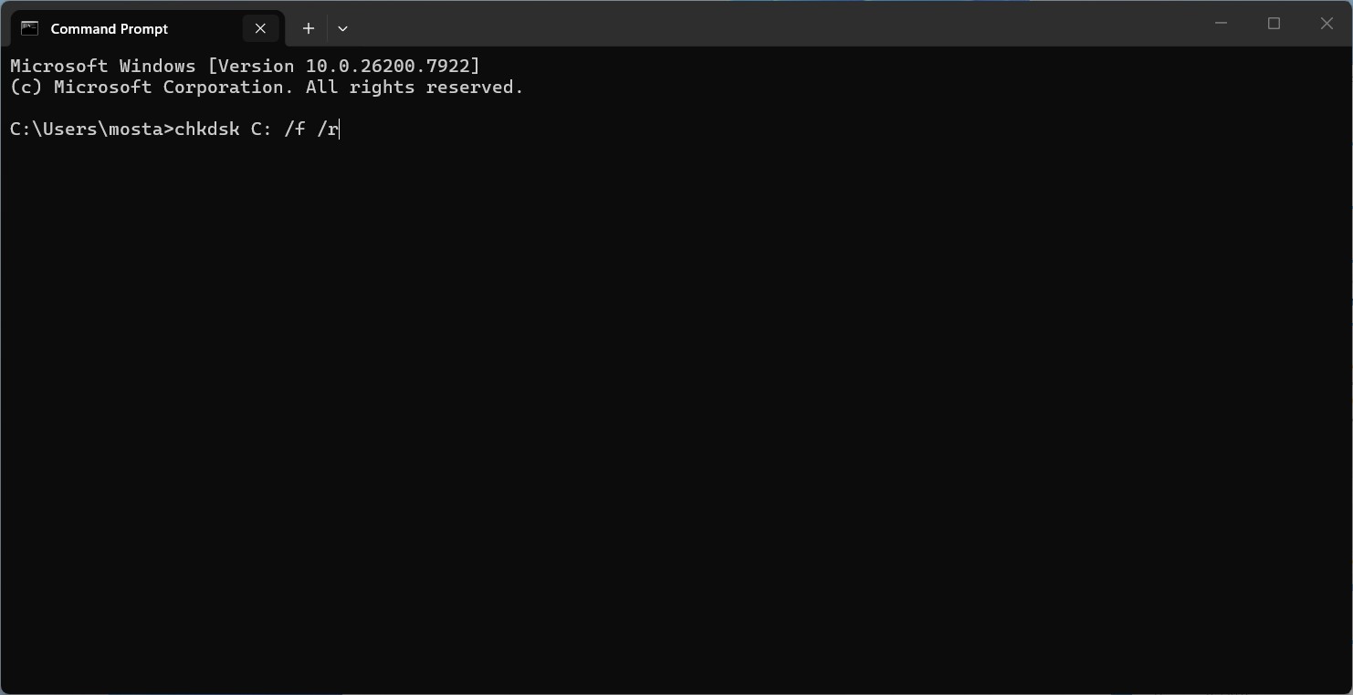 chkdsk C: /f /r