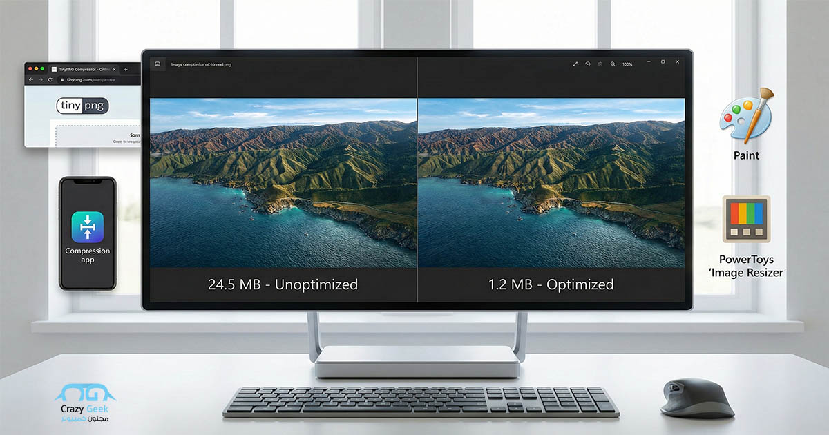 في هذا الدليل الشامل والمُحدّث، يشاركك خبراء ‘مجنون كمبيوتر’ أفضل الطرق والأدوات لضغط الصور (Lossless Compression) على الكمبيوتر، هواتف أندرويد وآيفون، بالإضافة إلى أدوات الذكاء الاصطناعي الأونلاين. سنتعرف على تقنيات الضغط الآمنة لضمان أفضل أداء لموقعك وحاسوبك.”