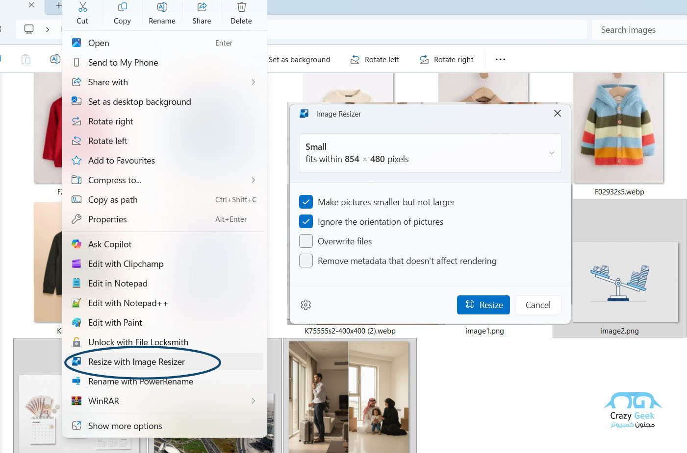 استخدام أداة Image Resizer: تصغير ومعالجة الصور دفعة واحدة في ويندوز 10/11