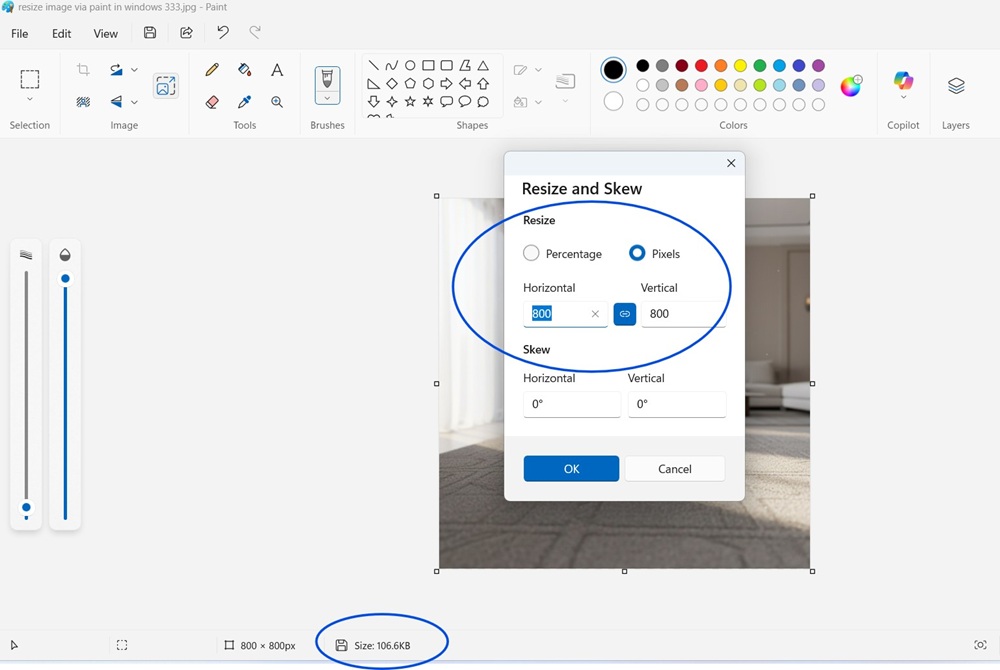 الطريقة الأولى: استخدام برنامج Paint لتقليل الأبعاد (Resizing)