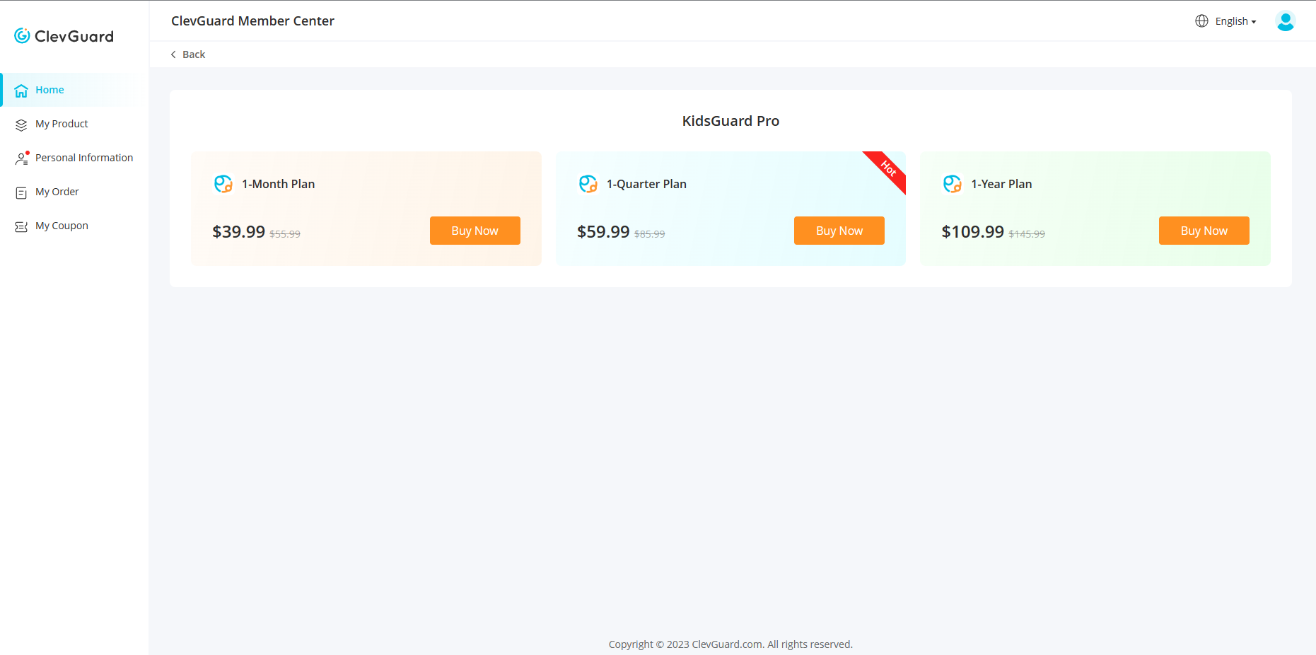 ستقوم باختيار الباقة المناسبة لك وإتمام عملية الشراء حتى تحصل على خدمات Kidsguard Pro.